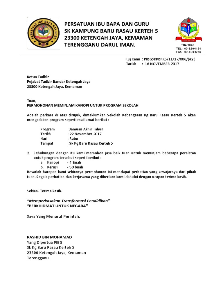 Surat Permohonan Pinjam Kanopi Pdf
